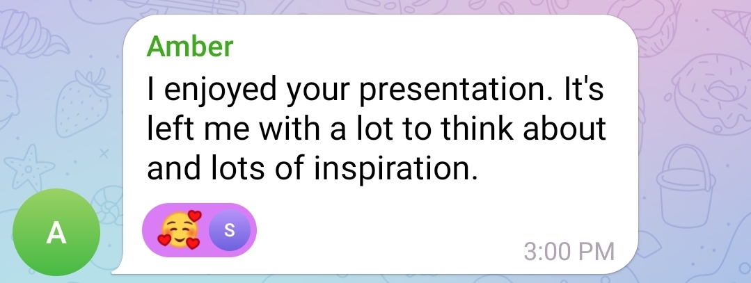"Hi Sandie, your talk was amaaaaaazing, thank you so much"